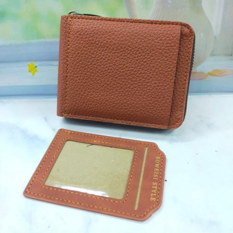 Merek : Boweisi Ukuran sebelum dibuka : 11 x 9 x 2 cm Ukuran setelah dibuka : 22 x 9 x 1 cm Slot foto : 1 slot Slot kartu : 4 slot Slot uang kertas : 1 ruang memanjang Penutup dompet : Full Zipper Material : Kulit sintetis