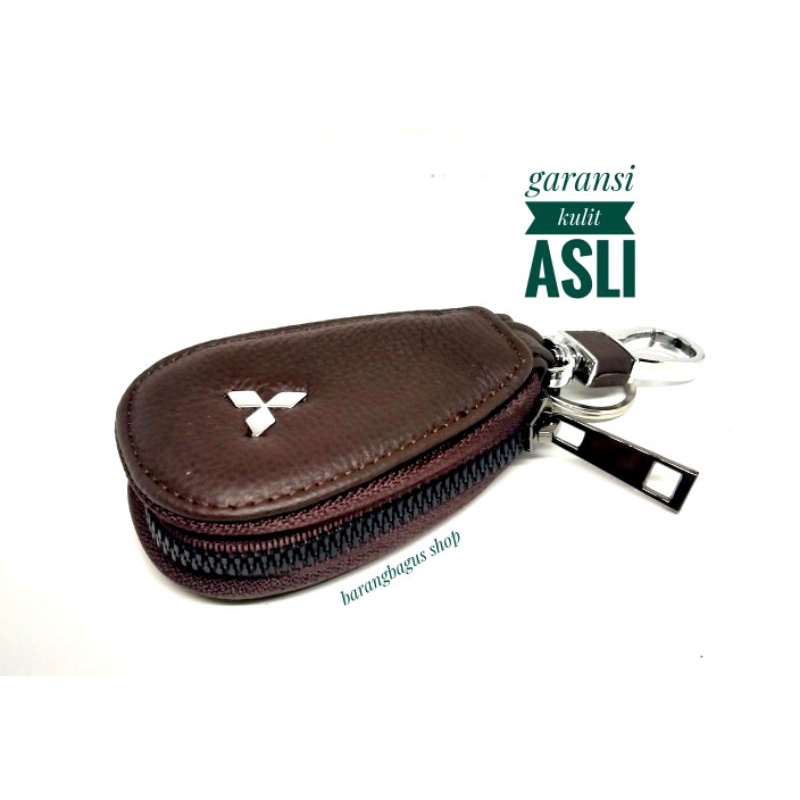 Detail Dompet remote mobil STNK keyless gantungan kunci kulit asli Mitsubishi