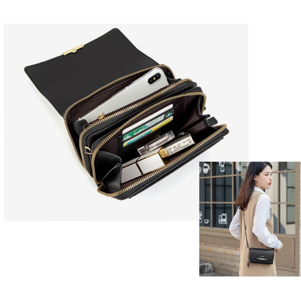 โ Dompet selempang wanita muat hp, berbahan kulit sintetis tebal dengan jahitan sangat rapi. โ Barang 100% baru, dompet import kekinian super kece! โ Bahan kulit sintetis tebal kualitas premium! dijamin awet, anti JEBOL! โ Dompet dengan model yang mewah cocok dipakai bepergian atau jalan-jalan . โ Terdiri dari 2 resleting utama, 3 kantong, dan 3 tempat kartu โ Tali bisa diatur, bisa di sesuai kan panjang pendeknya , tidak fix (bisa dilepas) โ FREE! dust bag anti debu untuk menyimpan dompet โ Dompet HP selempang super cantik membuat tampilanmu semakin keren! โ Kualitas premium, jaminan TERMURAH! โ Ayoo buruan, tampil cantik dan elegant dengan dompet MANTLE !
