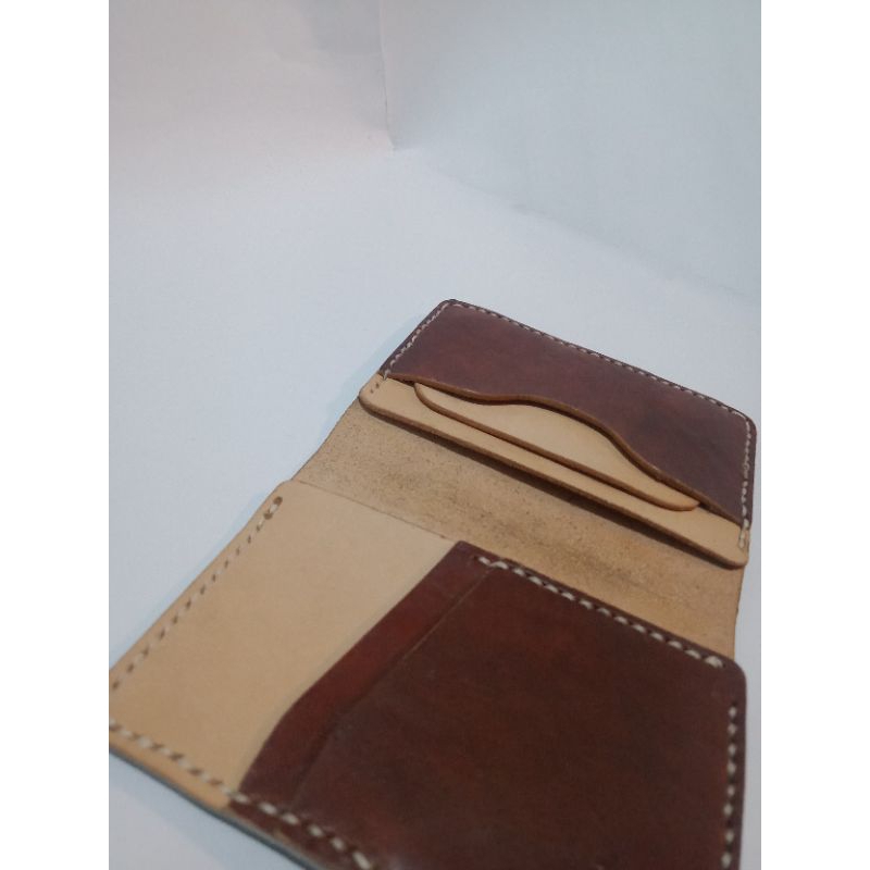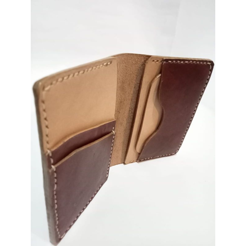 Dompet memiliki 4 buah slot kartu dan dua ruang untuk menyimpan uang tunai