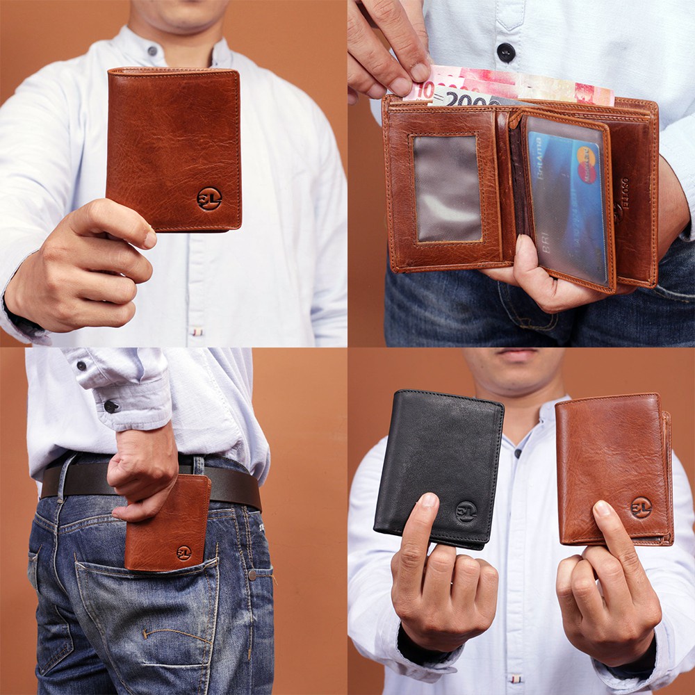 Detail Dompet Uang Kertas Koin Kulit Dompet Kartu Lipat Kulit Sapi Asli KULIT Kualitas Terbaik DE01
