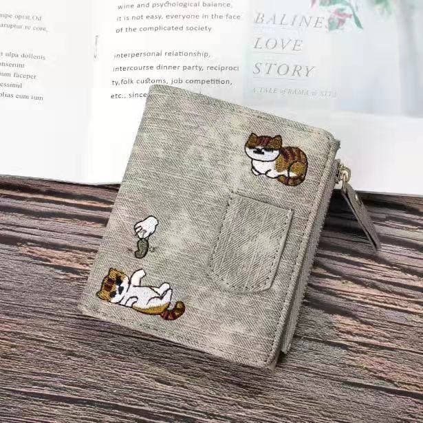 Detail DOMPET WANITA LIPAT KULIT KUCING FELICIA IMPORT MURAH MOTIF WA033B2 DENIM ORI C18219 KOREA