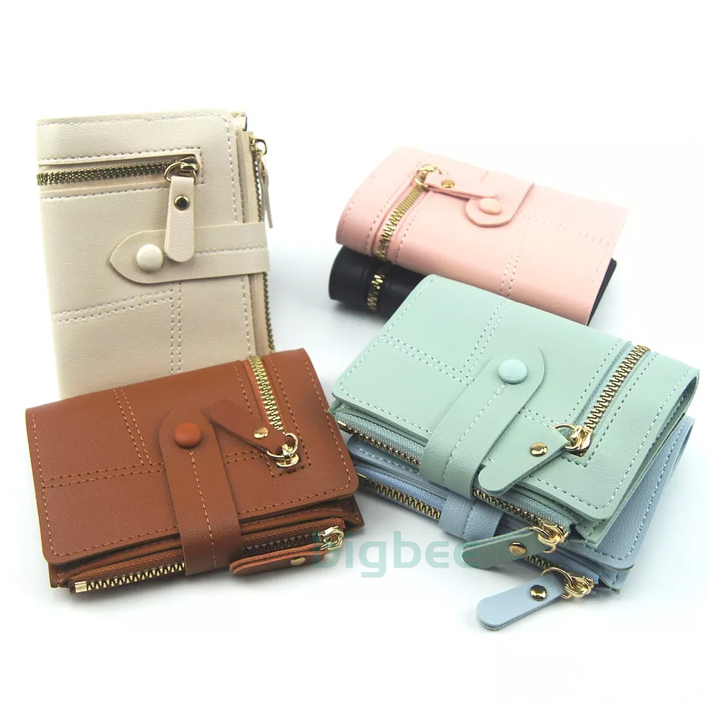 Features: 【STURDY MATERIAL】Wallet is made of PU leather material, polyester lining, wear-resistant, scratch-resistant. PU leather has fine texture, features high color firmness, not easy to fade. 【FOR WOMEN】The artificial leather is soft, shiny, with fine stitching and good texture. Solid design and fashion, the wallet is suitable for women, refined and elegant. 【MULTI COMPARTMENTS】It has built-in 8 card slots, photo slots, 2 zipper coin pockets, 4 bill slots, bill slots, large capacity and classified storage, convenient for you to find and take items. 【ZIP ANAD SNAP BUCKLE】The zipper pockets open and close smoothly, the metal texture prevents items from being lost. Wallet snap design, fold the wallet and pull through the strap, and press the snap, safer and more reliable. 【TRAVEL PORTABLE】Tri-fold design, the wallet is (L x W x H) about 14 x 10 x 3cm/5.51 x 3.94 x 1.18inch, short type, easy to put in bag or pocket, small and portable. Specifications: Color: beige, black, light green, light blue, light pink Material: PU leather, polyester lining Gender: women Style: tri-fold, short Closure: zipper, snap closure Size: (L x W x H)about 14 x 10 x 3cm/5.51 x 3.94 x 1.18inch Package Includes: 1pc x Women wallet Note: 1. Due to the light and screen difference, the item's color may be slightly different from the pictures. 2. Please allow 0.5-2 cm differences due to manual measurement.