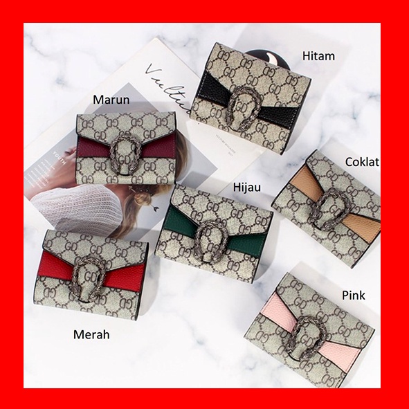 Dompet wanita lipat pendek motif GD hitam maroon coklat pink hijau ready stok