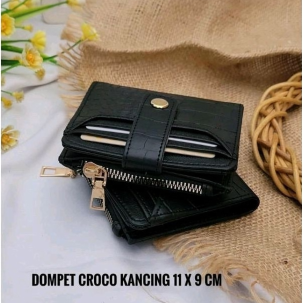 Details: Bahan : Kulit Croco Size kondisi tertutup : 11,5 x 9,5 x 2 cm Size kondisi terbuka : 18,5 x 11,5 x 1 cm Berat : 90 gr -Terdapat 1 ruang berukuran kecil dengan penutup resleting -Terdapat 3 slot kartu di bagian depan dompet dengan penutup kaitan kancing -Terdapat 5 slot kartu untuk menaruh kartu di bagian dalam dompet -Terdapat 1 Sekat untuk menaruh uang kertas -Terdapat 1 slot untuk menaruh