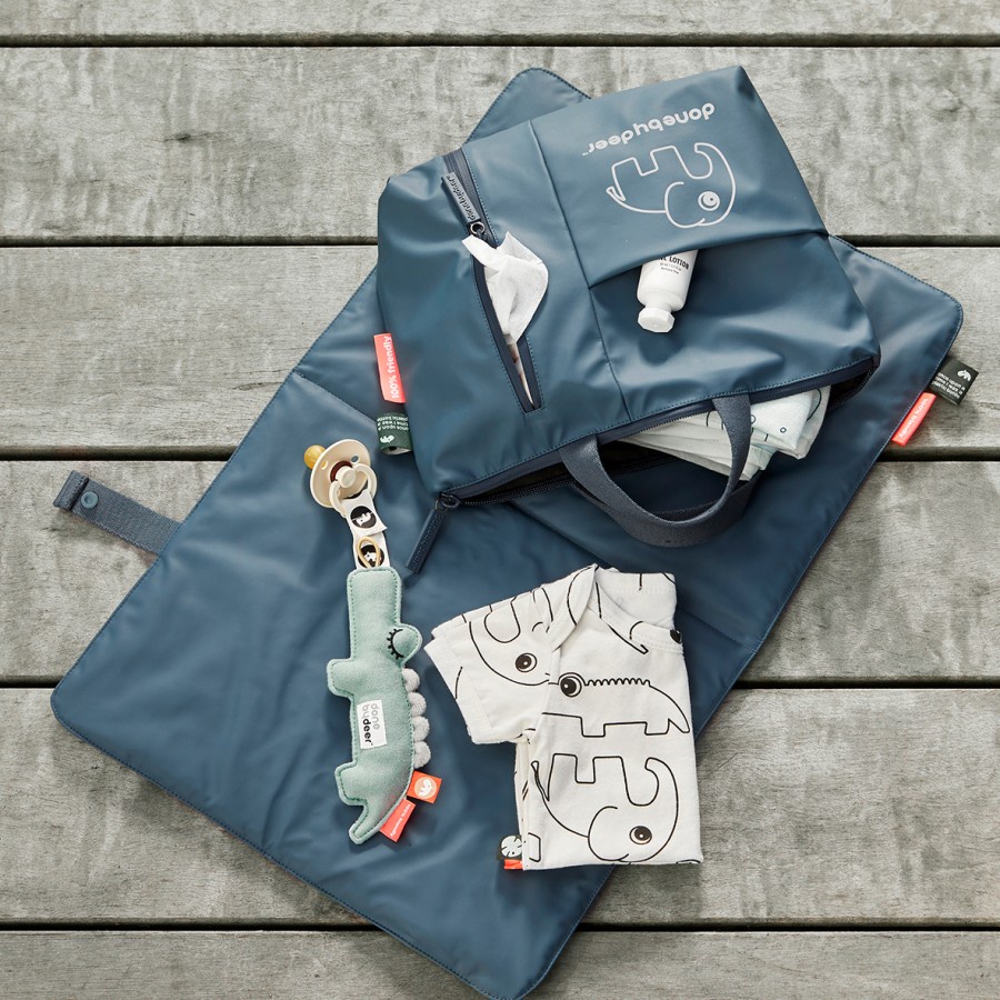 The Done by Deer Changing Clutch combines functionality, long-lasting design and sustainability. 15 PET bottles are being recycled when manufacturing both the outer fabric and inner lining.