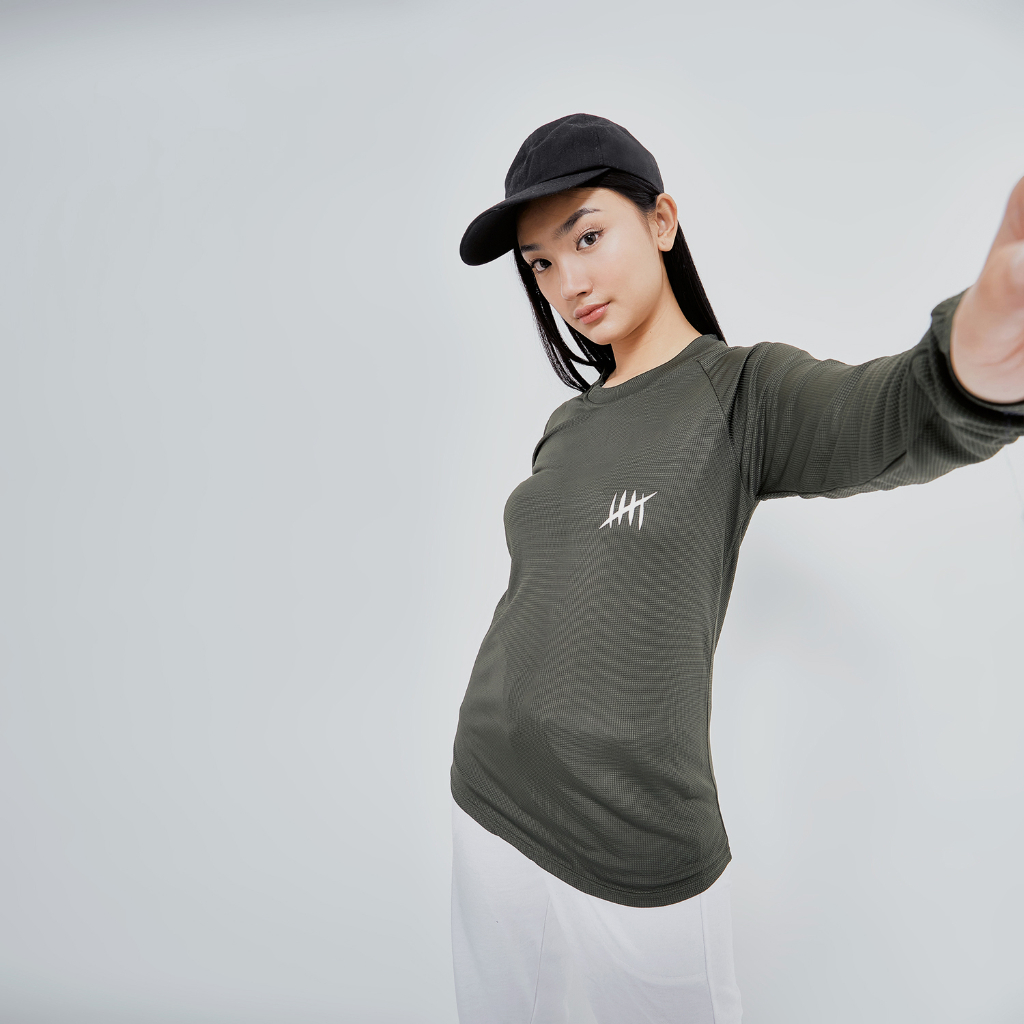 Detail DONSON Manset Polos Kaos Lengan Panjang Maksimum Mobilitas Wanita Army