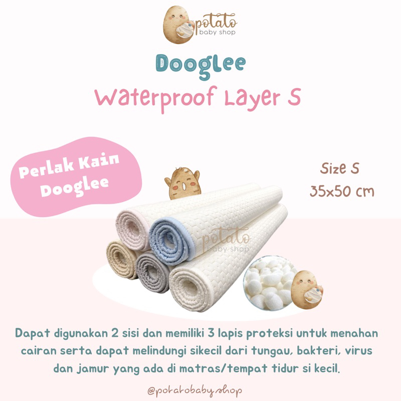 Dooglee Waterproof Layer merupakan lembaran proteksi yang diproduksi dengan teknologi tinggi untuk melindungi anda dan bayi anda dari benda kotor dan tumpahan cairan yang dapat merusak kasur serta dapat menjadi alas untuk tidur. mengandung serat sutera dan viscose merupakan material utama Dooglee Waterproof Layer karena lebih dingin, memiliki daya serap maksimal, menambah kenyamanan dengan teksturnya yang lembut, serta aman untuk kulit yang sensitif karena Serat sutera dan viscose adalah serat alami. proteksi dengan material breathable memungkinkan anda dan bayi anda tetap sejuk (tidak berkeringat).