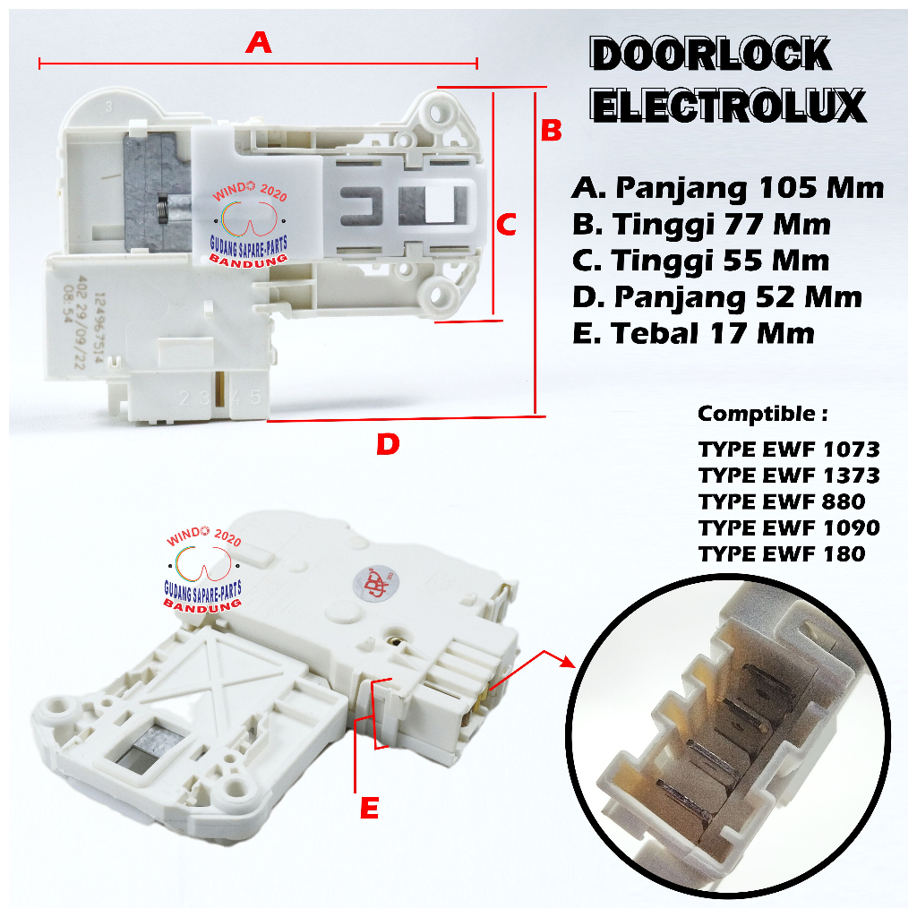 Detail DOOR LOCK ELECTROLUX SWITCH PINTU MESIN CUCI PRONT LOADING EWF1073 EWF1082 EWF1092 EWF1495 DL-S1