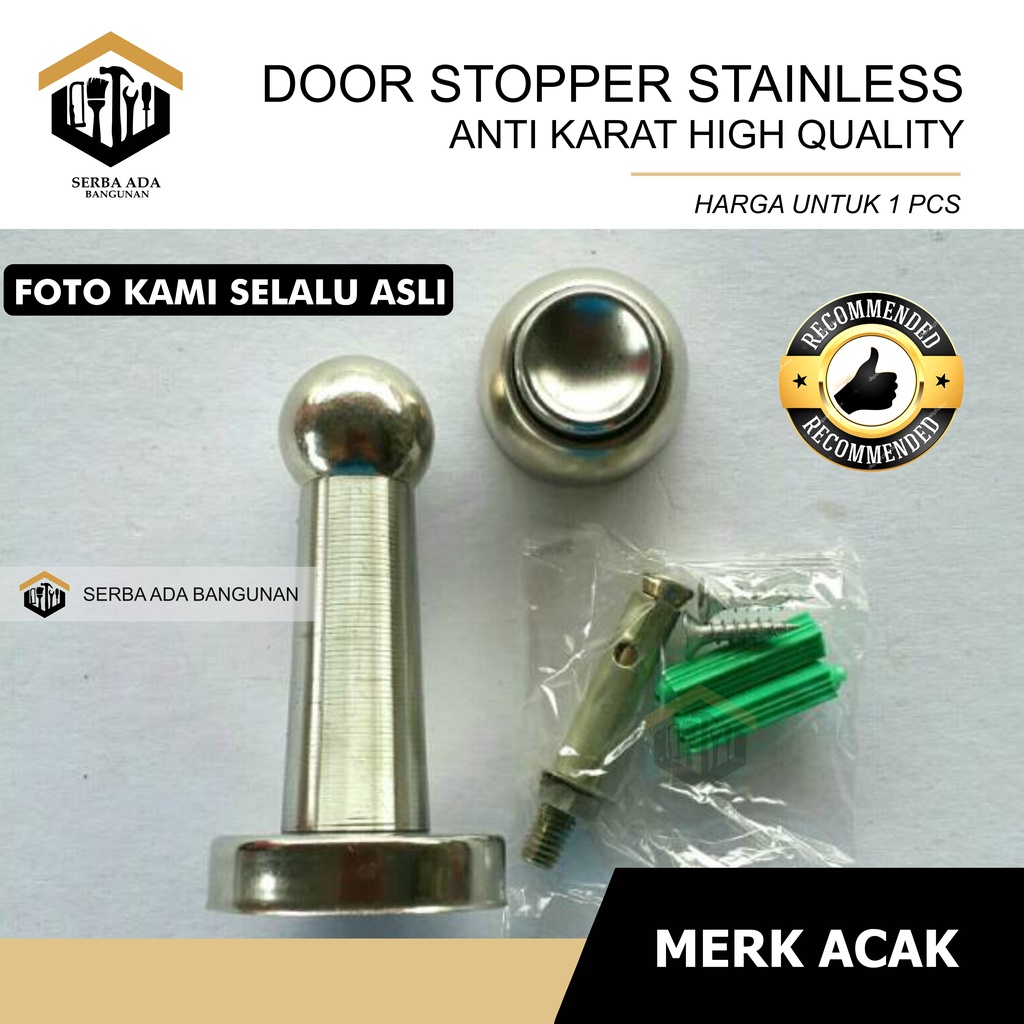 DOOR STOP / PENAHAN PINTU : ✦ MERK : ACAK (MENYESUAIKAN DGN STOK) ✦ MATERIAL : STAINLESS ANTI KARAT ✦ UKURAN : UNIVERSAL / STANDARD DOOR STOP ✦ SUDAH TERSEDIA SKRUP, FISHER, DLL ✦ HARGA TERTERA ADALAH HARGA 1 PCS