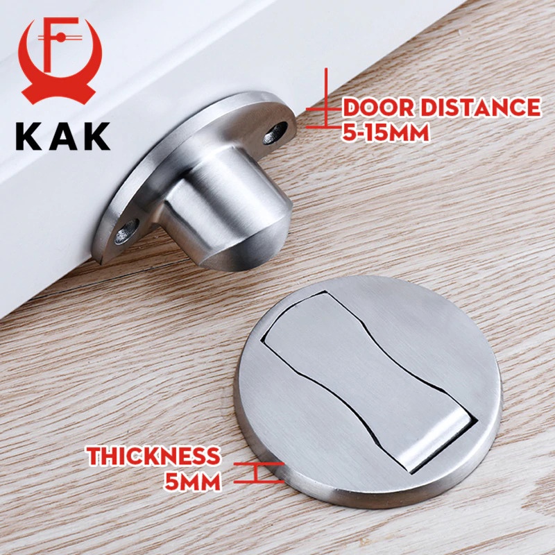 Apakah Anda memiliki pintu yang selalu terbuka atau tertutup sendiri? Jika iya, Anda bisa menggunakan door stopper atau penghalang pintu dari KAK. Dengan bahan stainless steel, door stopper ini mampu menahan beban pintu dengan kuat. Sistem magnet yang digunakan membuat pintu dapat menempel ke door stopper dengan kuat dan aman.
