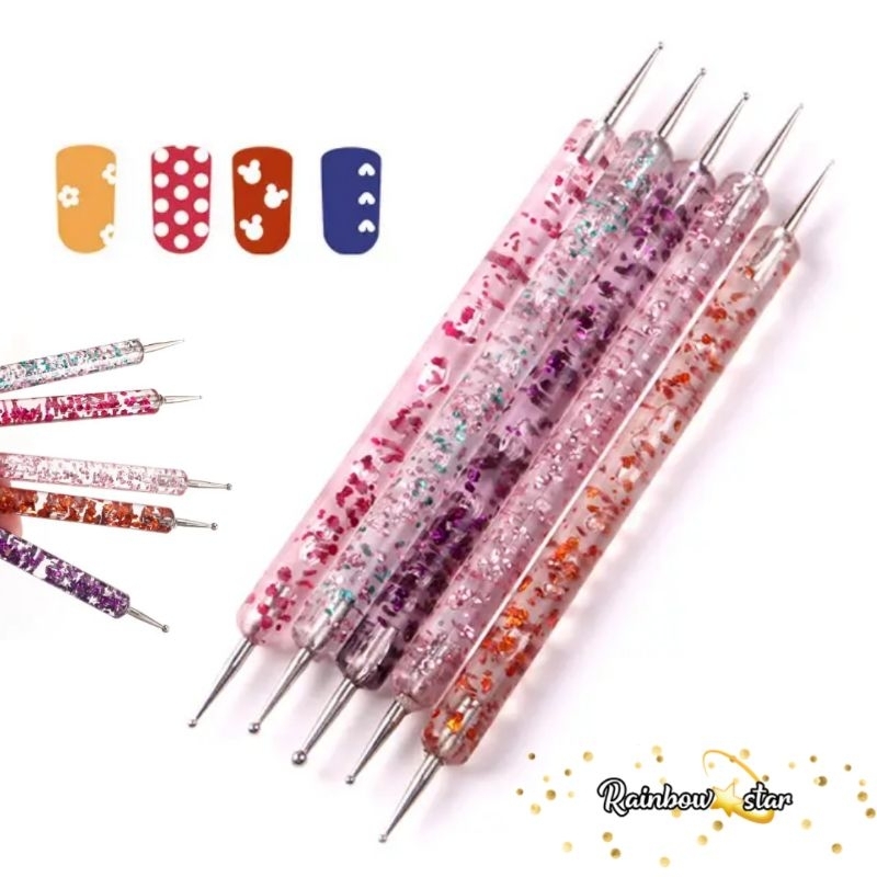 dotting tool berisi 5 pcs pen dengan 5 mata yang berbeda bisa menghias tebal-tipis sesuai keinginan tinggal dicelup ke kutek kita sendiri lalu gambar sesuai keinginan kita