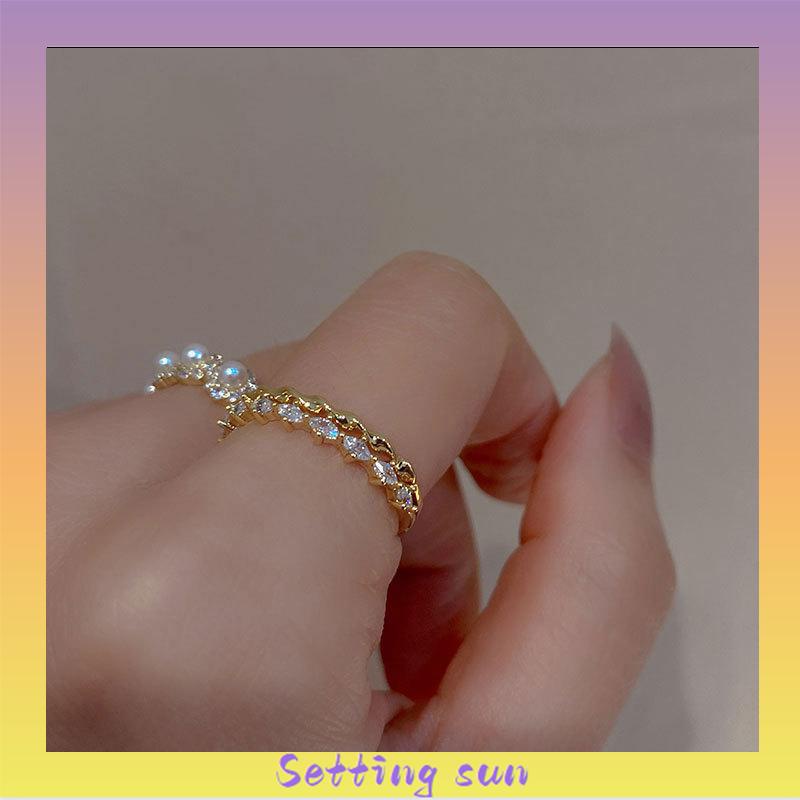 Detail Double-layer Retro Pearl Diamond Ring Niche Light Desain Mewah Cincin Dapat Disesuaikan Terbuka TN