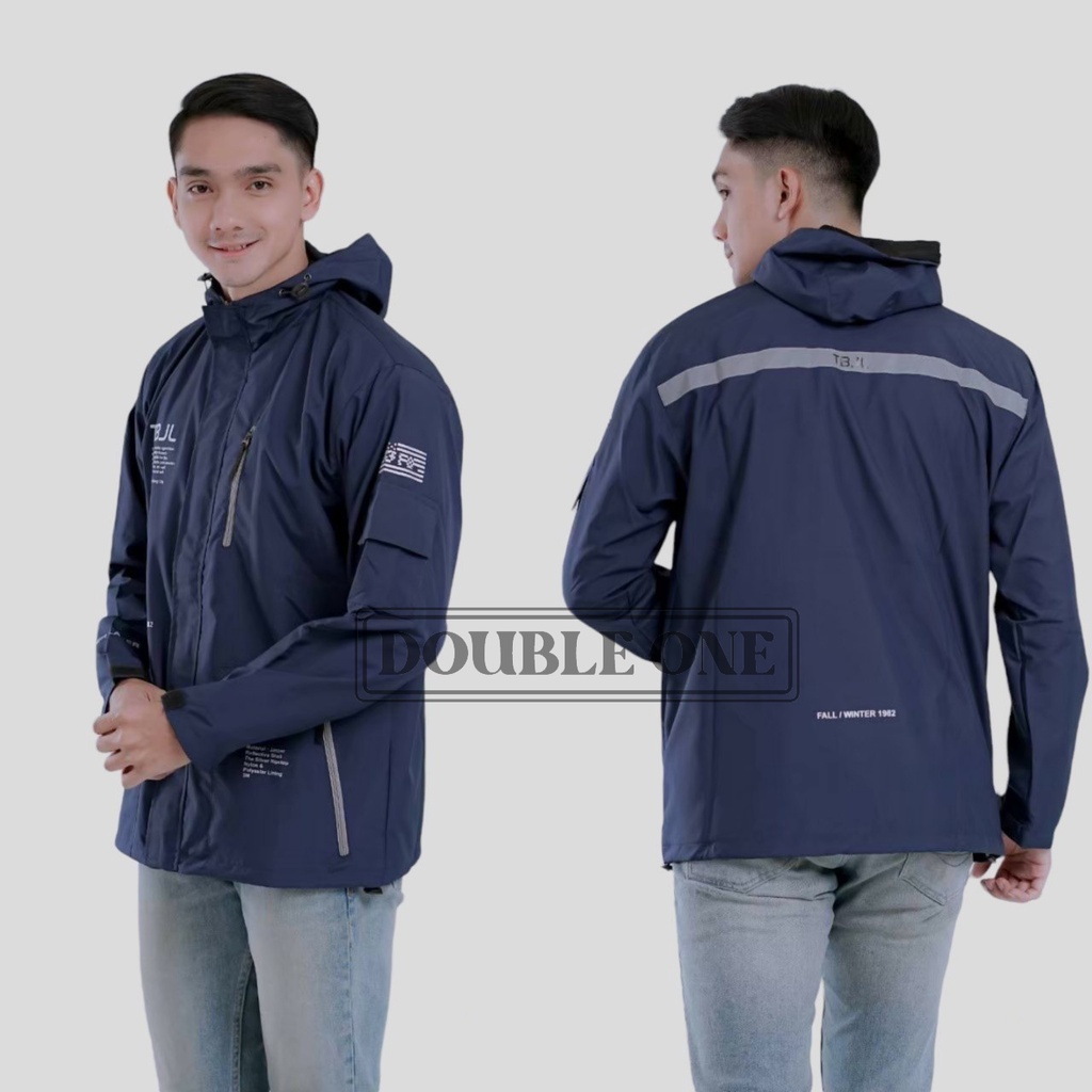 Pakaian Pria > Jaket, Mantel, & Rompi > Jaket & Mantel Musim Dingin > DOUBLE ONE - Jaket Pria Outdoor Taslan Original THE BOJIEL / Jaket Waterproof / Jaket Hoodie Parasut Pria / Jaket Hoodie Anti Air Navy Blue