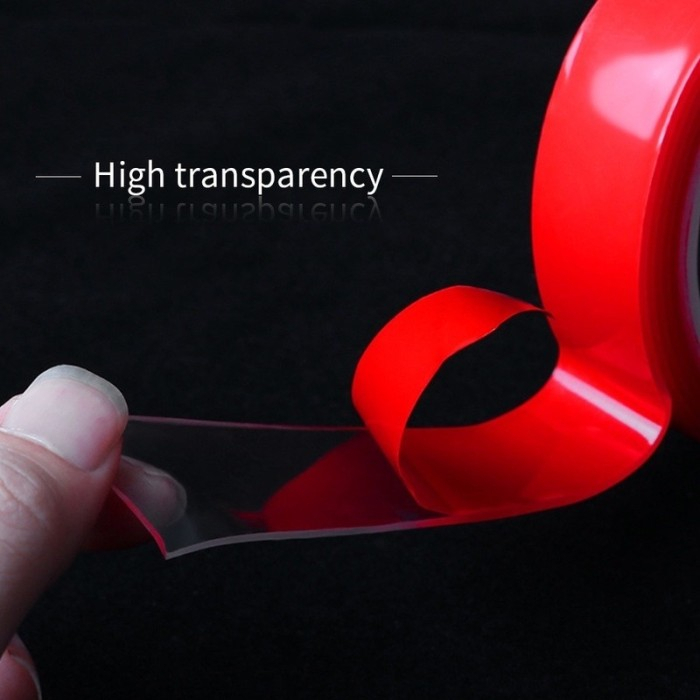 Double tape ini memiliki karakteristik yang bening, dengan ketebalan sekitar 1 mm. Double tape ini memiliki daya rekat yang sangat kuat, sehingga sangat cocok untuk menempelkan komponen-komponen tertentu. Sebagai contoh, Anda dapat menggunakan double tape ini untuk pemasangan berbagai trim otomotif baik eksterior maupun interior.