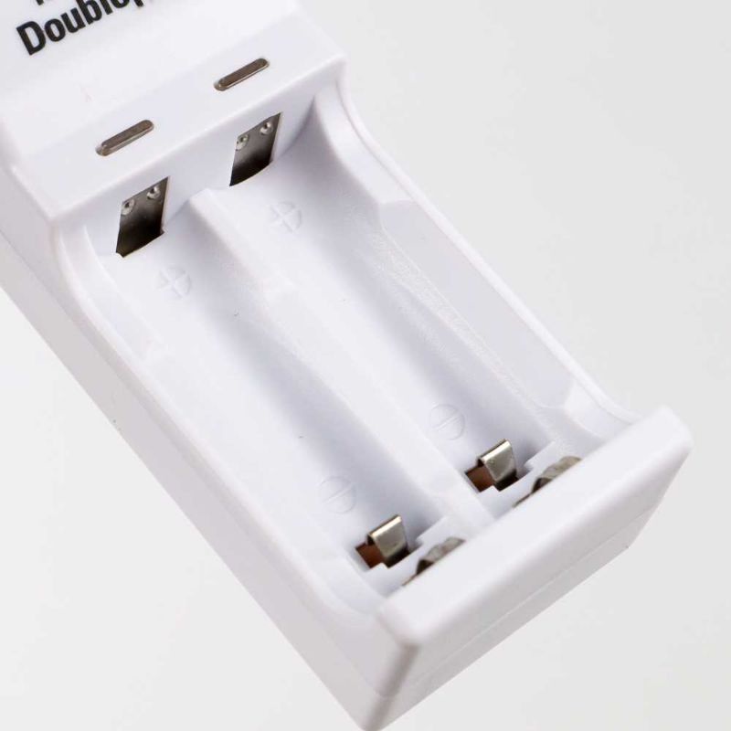 Fitur 2 Slot Baterai Charger baterai Doublepow ini memiliki 2 buah slot untuk baterai jenis AA dan AAA yang dapat diisi secara bersamaan untuk menghemat waktu.