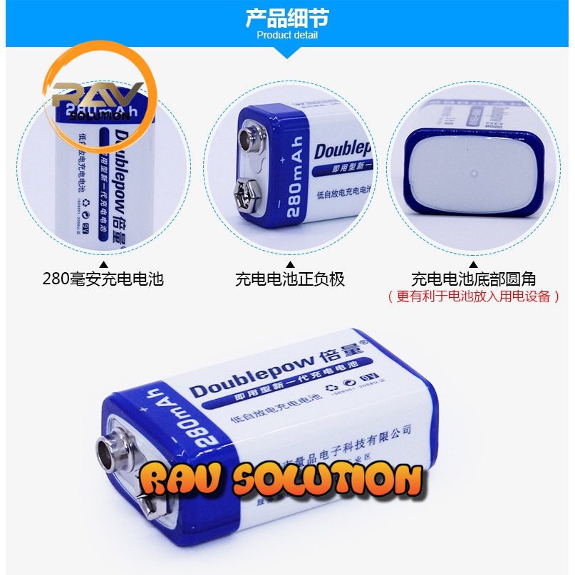 Detail DOUBLEPOW Charger Baterai 2 slot for 9V with 1 PCS 9V Battery 280mAh - SET A RAV SOLUTION