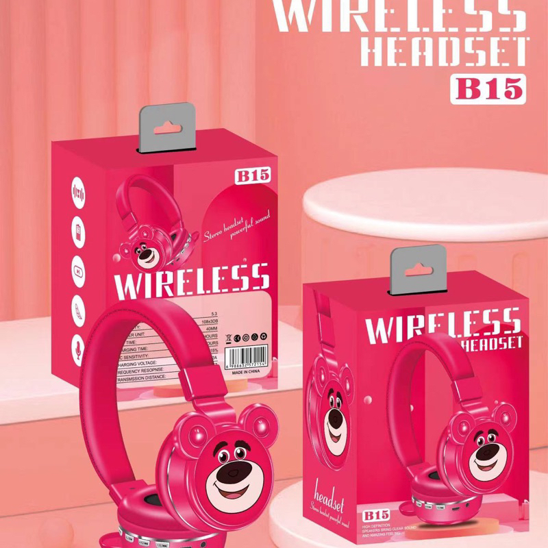 Komputer & Aksesoris > Gaming > Gaming Headset > [ DR / B15 ]HEADPHONE BANDO BLUETOOTH / WIRELESS KARAKTER SERI DR 60 RABBIT /DR 61 BEAR / DR 62 CAT / B15 LOTSO BEAR SO CUTE IMUT