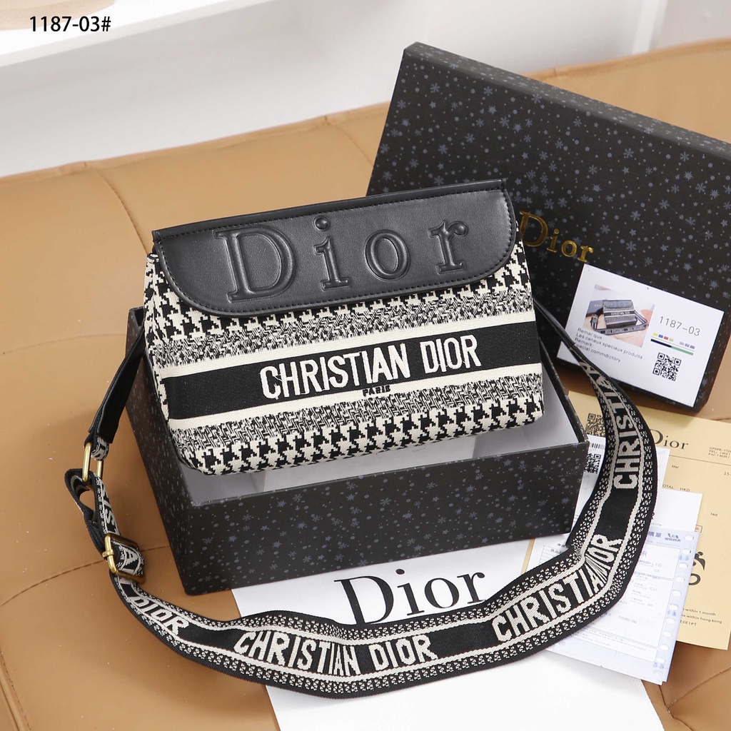 Tas Wanita > Tas Selempang & Bahu Wanita > DR Black/Beige Canvas Houndstooth Embroidered Sling Bag #1187-03