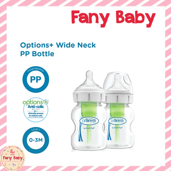 Detail DR BROWN'S BOTTLE WIDE NECK TWIN OPTIONS+ ANTI COLIC 150ML & 270ML