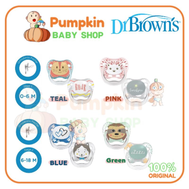Dr.Brown's Prevent PRINTED SHIELD Pacifier Stage 1 untuk bayi usia 0 - 6 bulan dan Stage 2 untuk bayi usia 6 - 12 bulan