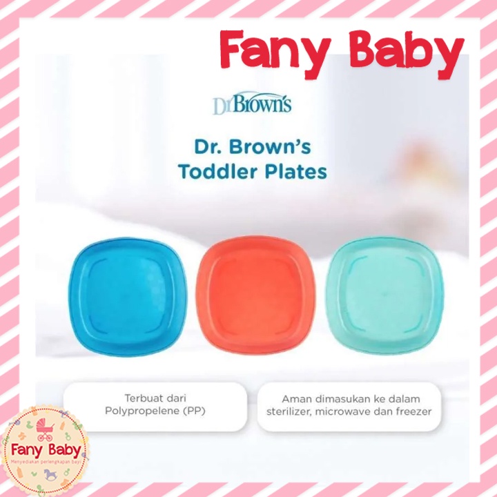 Mengapa Moms harus memilih Dr. Brown's Toddler Plates? - Aman untuk si Kecil Terbuat dari bahan telah teruji aman digunakan untuk makan. Serta aman juga dimasukan ke dalam microwave, freezer, dan sterilizer. - Makan Lebih Semangat Hadir dalam warna merah, biru dan teal yang mampu menggugah selera makan dari sisi psikologis - Praktis dan Mudah Disimpan Piring dapat disusun sehingga memudahkan Ibu untuk menyimpan