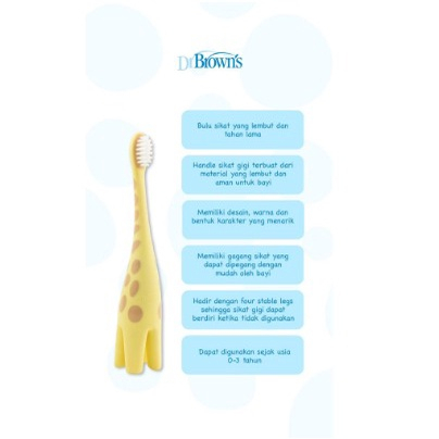 Dr. Brown's menghadirkan Dr. Brown's Toddler Toothbrush untuk menjaga kebersihan mulut dan gigi Si Kecil sejak usia dini. Dengan desain bentuk sikat gigi yang menarik dan menyenangkan yang dapat menarik perhatian Si Kecil untuk menyikat gigi, serta masing-masing dilengkapi dengan suction cup base pada bagian bawah sikat gigi untuk menjaga sikat gigi tetap berdiri ketika tidak sedang digunakan.