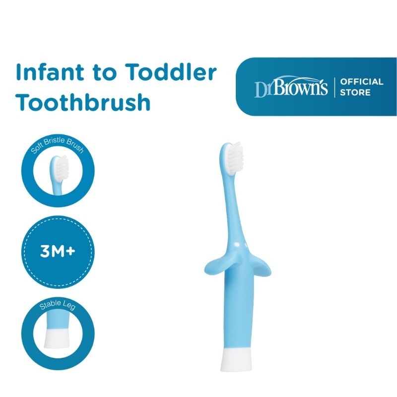 ready warna pink dan biru Membentuk kebiasaan merawat kesehatan gusi dan gigi dapat dimulai sejak dini untuk membantu pertumbuhan gusi dan gigi yang sehat. Dr.Brown’s bekerja sama dengan HappyTeeth company USA mempersembahkan serangkaian produk dental care yang hadir sebagai solusi untuk mengajarkan Si Kecil untuk selalu menjaga kebersihan gigi sejak dini. 1 – Infant-to-Toddler Toothbrush Sikat gigi yang diciptakan khusus bagi bayi untuk membentuk kebiasaan membersihkan gusi dan gigi sejak dini Dengan bahan yang sangat lembut dan aman untuk gigi pertama si kecil Dengan design Elephant-ear Prop brush (desain dengan bentuk telinga gajah) yang berfungsi sebagai pengaman Bentuk handle seperti belalai gajah yang mencegah bulu sikat tersentuh permukaan meja/lantai dalam posisi apapun
