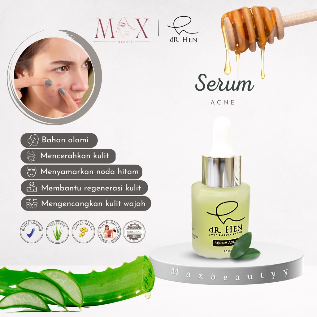 dR. Hen Serum Acne Tahu kah kamu bahwa Aloe Vera dan Royal Jelly merupakan bahan alami yang sangat cepat dalam perawatan kulit yang sangat aman, untuk itu kita mengkombinasikan nya dalam semua produk dR Hen. Merupakan Produk terbaru dari dR. Hen by dr. Richard Lee Serum khusus untuk keluhan jerawat/beruntusan dan Acne yang sangat bagus sekali untuk perawatan wajah berjerawat karena terbuat dari bahan Alami yaitu Aloevera dan Royal Jelly Menghilangkan jerawat Mengatasi Kulit wajah sensitip Memudarkan bekas jerawat