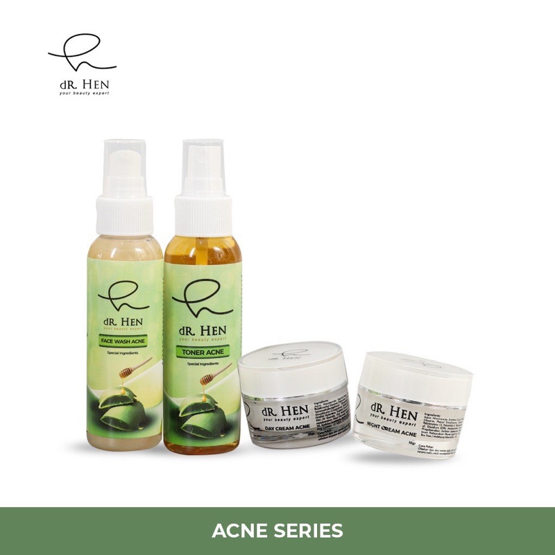 dR Hen - Paket Acne Basic 4 produk • Facial Wash Acne • Toner Acne • Day Cream Acne • Night Cream Acne