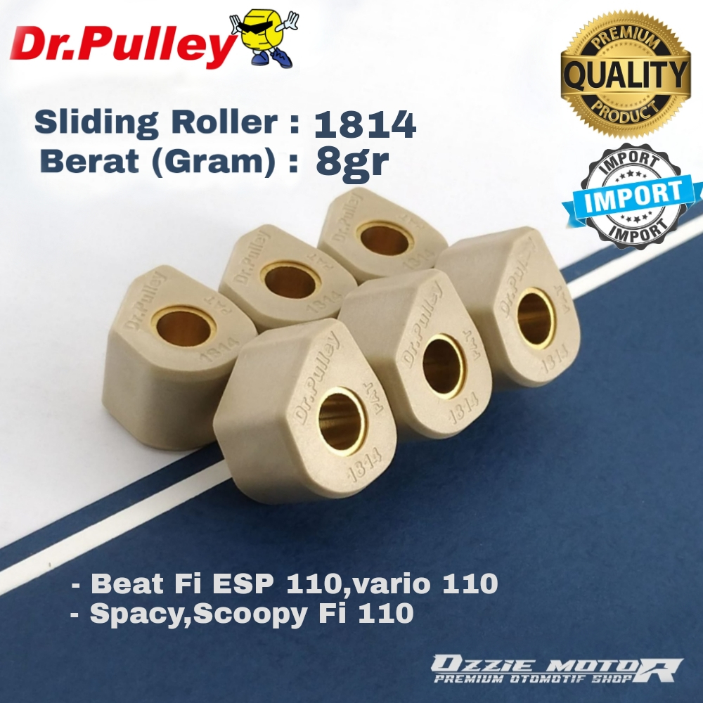 Sliding Roller Dr. Pulley diproduksi Oleh UNIONMATERIAL yang berasal dari Negara Taiwan dan telah memiliki paten US world wide. Roller yang terpasang pada variator / rumah rolller / pulley memiliki ukuran dan berat tertentu untuk mengatur performa torsi / tarikan dan seberapa cepat top speed bisa dicapai pada motor matic.