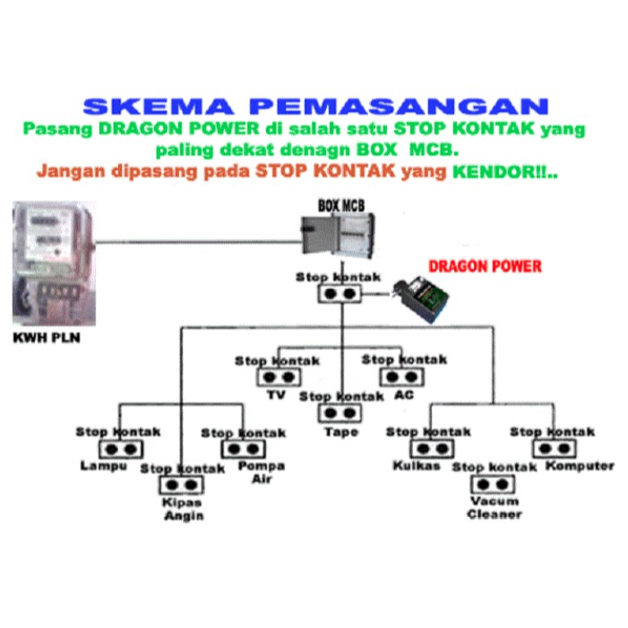 CARA PEMASANGAN DRAGON POWER : - Colok DRAGON POWER pada stop kontak yang paling dekat BOKS MCB/ SIKRING agar EFEK penghematannya dapat lebih maksimal. - Pasang DRAGON POWER pada stop kontak yg masih baik/ rapat/ klop (Jangan dipasang pada STOP KONTAK yg KENDOR!!..) - Cukup pasang 1 unit DRAGON POWER yg sesuai dengan daya terpasang, mis : (Daya 2200 Watt cukup pakai 1 Unit Type R2)