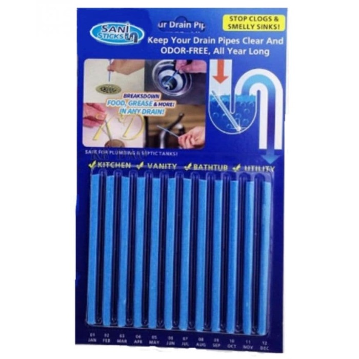 - Jauhkan saluran air Anda bersih dan bebas bau, sepanjang tahun dengan Sani Sticks sebagai bagian dari membersihkan persediaan