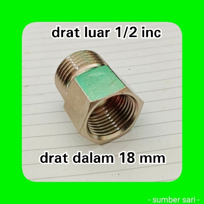 ini gan.... drat luar nya 1/2 dim x drat dalam 18 mm biasanya untuk pompa yang output atau inputnya drat meu di aplikasikan ke pipa 1/2 dim silahkan di order gan....