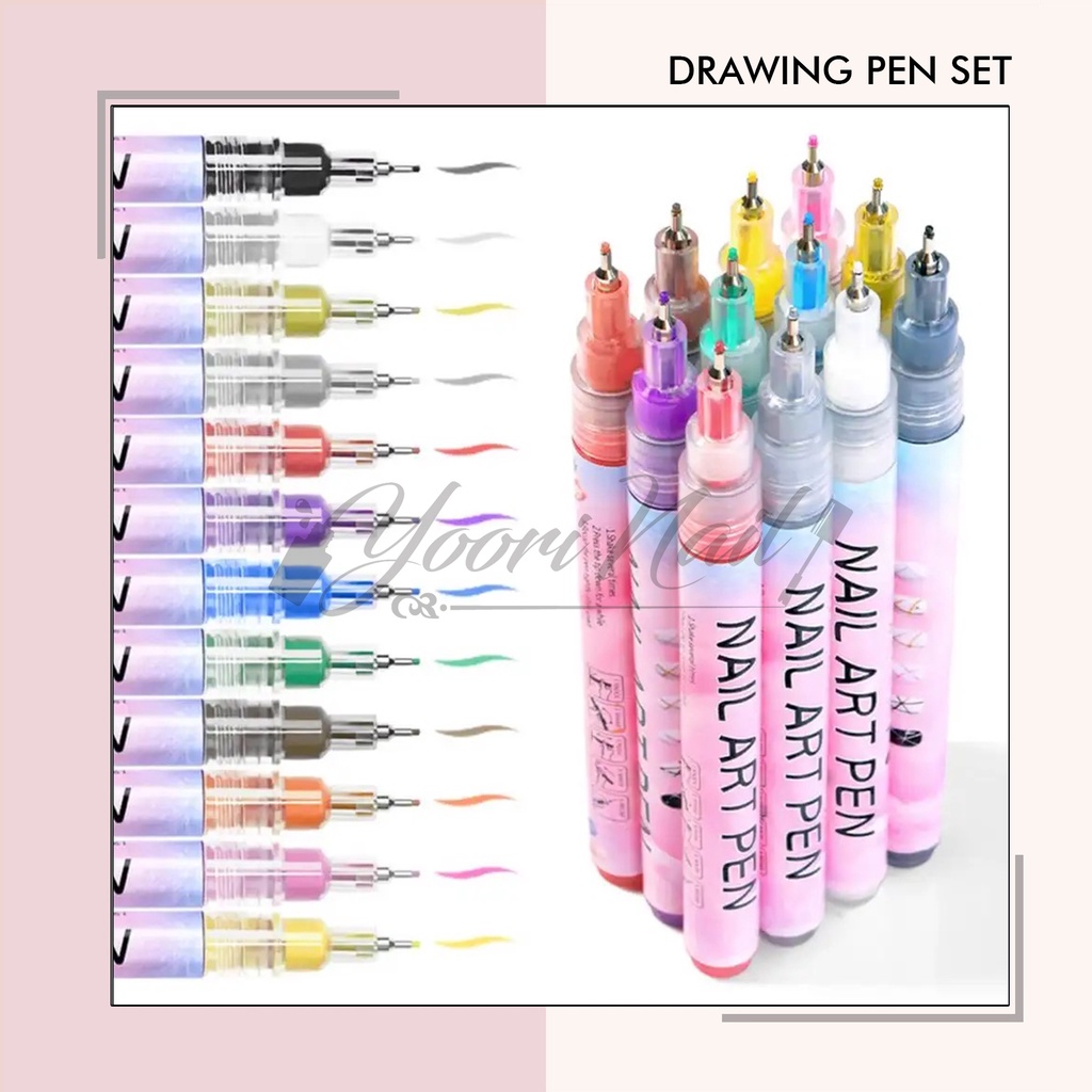 Detail Drawing pen set painting gel drawing nail art pen lukis nailart dekorasi