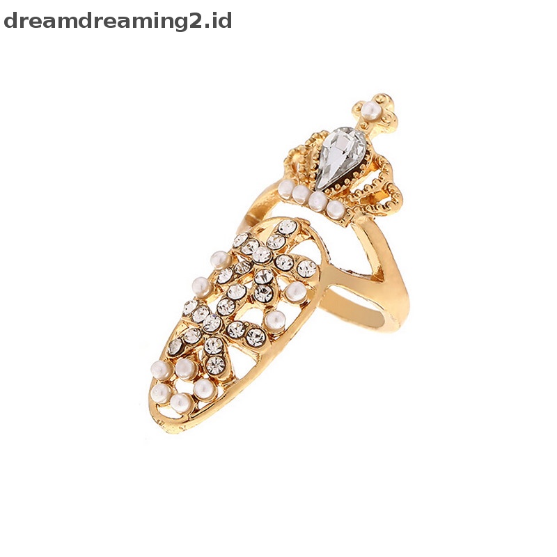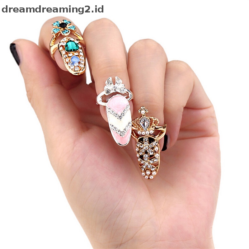 Detail (drea) Wanita Elegan Ikatan Simpul Kuku Cincin Pesona Mahkota Bunga Kristal Jari Kuku Rings//