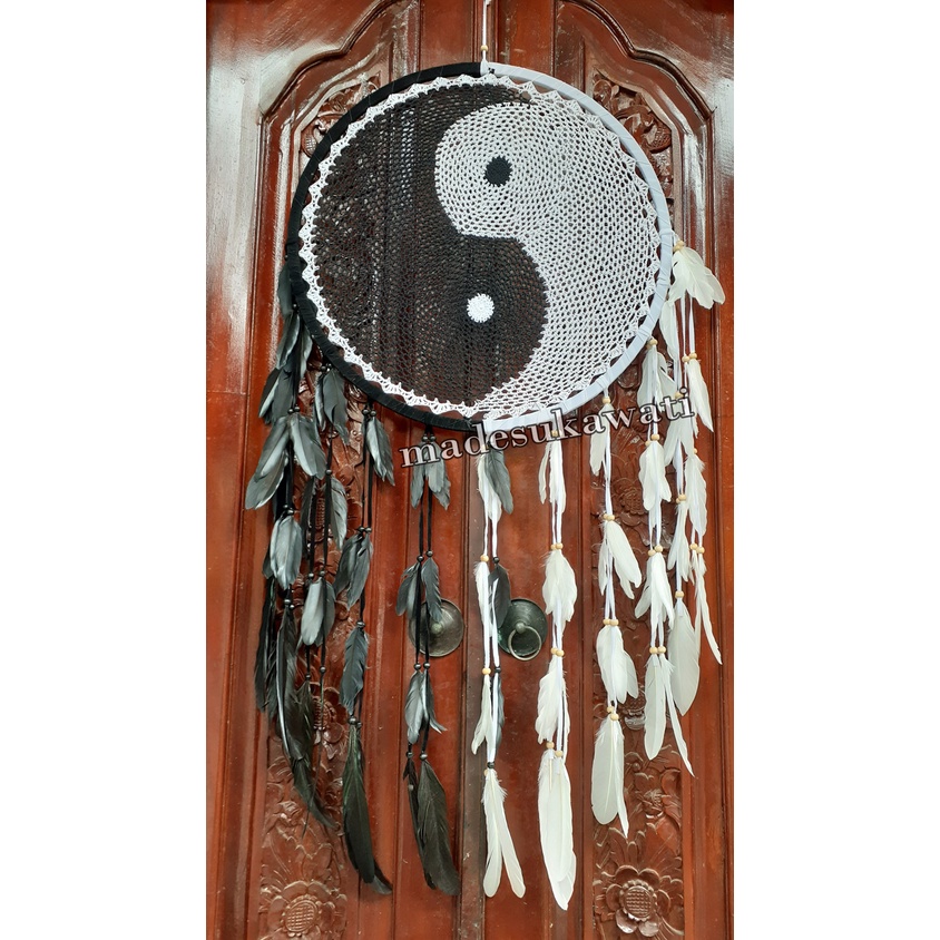 Dream catcher yin yang sulam jaring benang Diameter 32cm panjang beserta tali gantungan98cm,