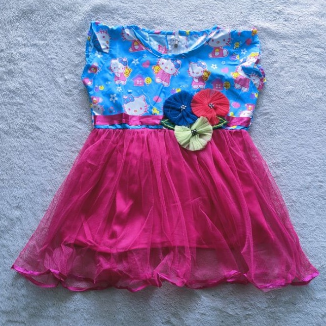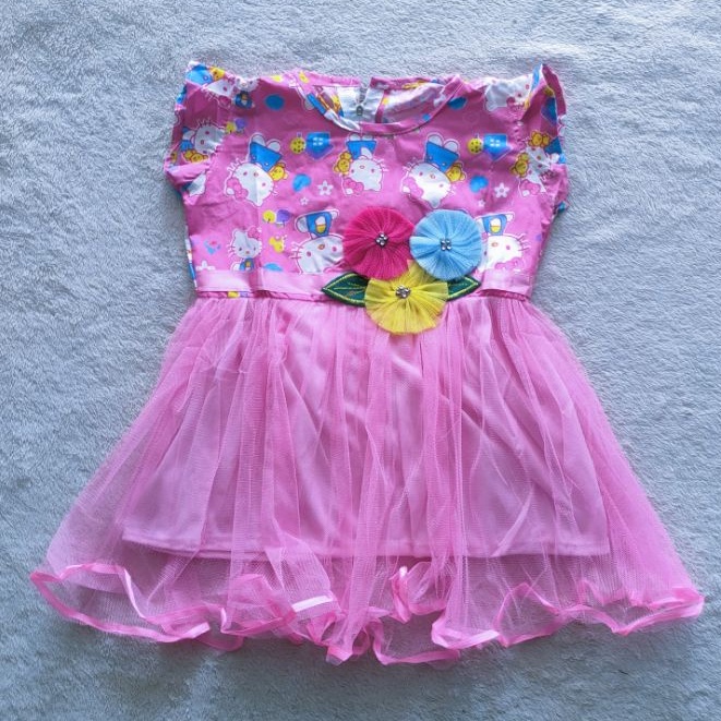 Dress anak 1 2 tahun gaun anak tutu hellokitty lucu baju anak cewek rok shabi Hk( dress shabi hellokitty )