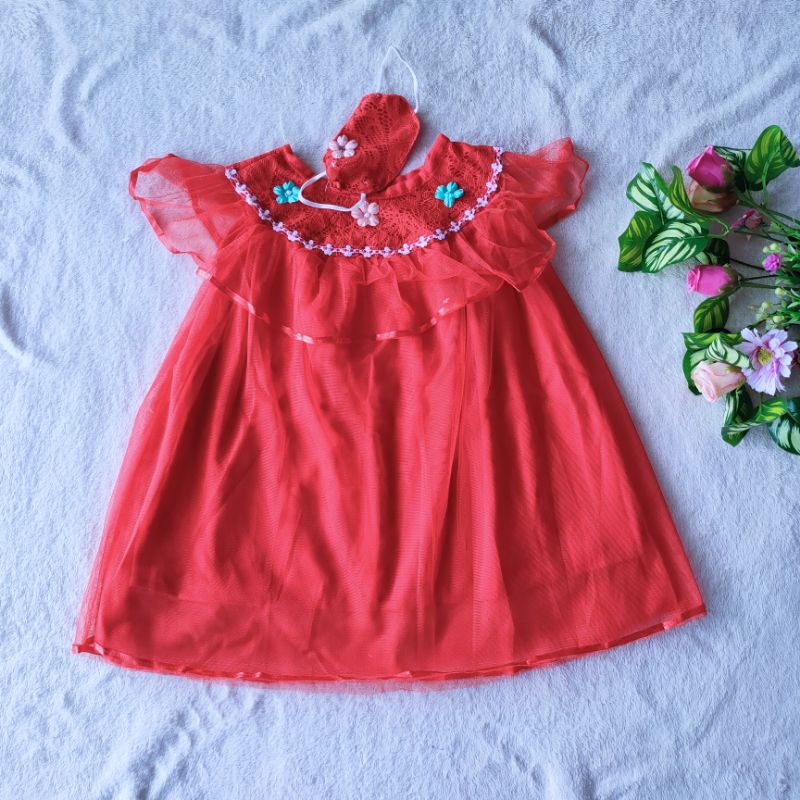Detail Dress Anak 2 3 Tahun cewek perempuan Tile Free masker ( Dress KerLi )