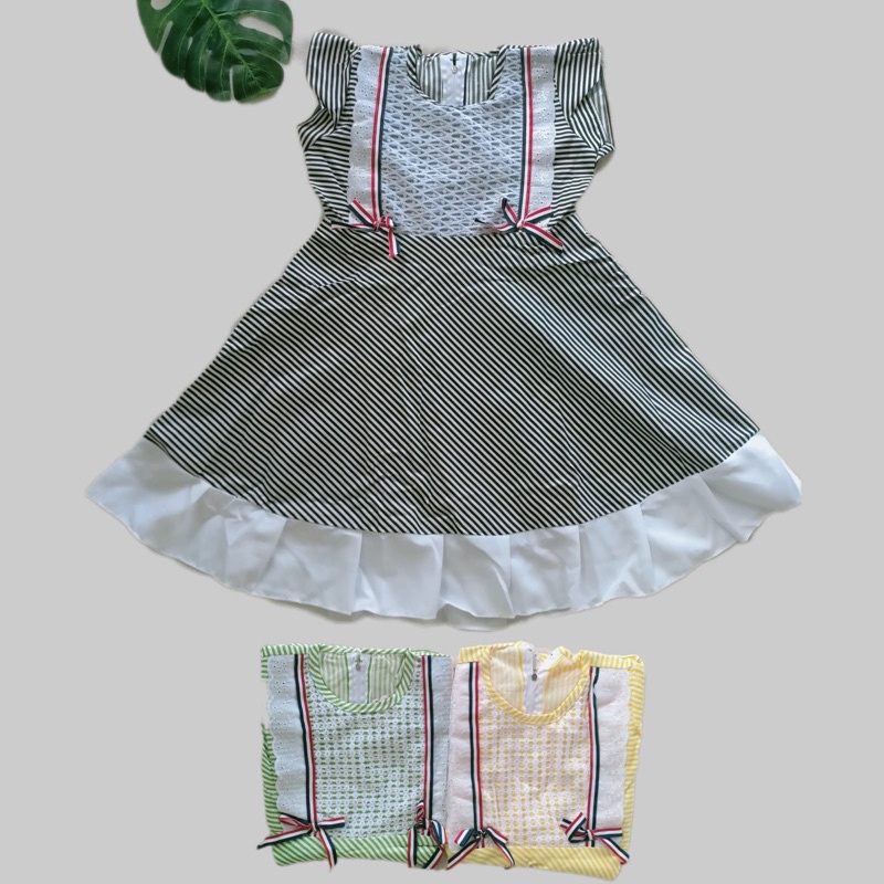 Detail Dress Anak 4 5 Tahun motif strip brokat Renda Putih perempuan murah biru hitam Hijau pink merah Fatonah shop terbaru baju Grobogan (Dress BrokatStrip XL)