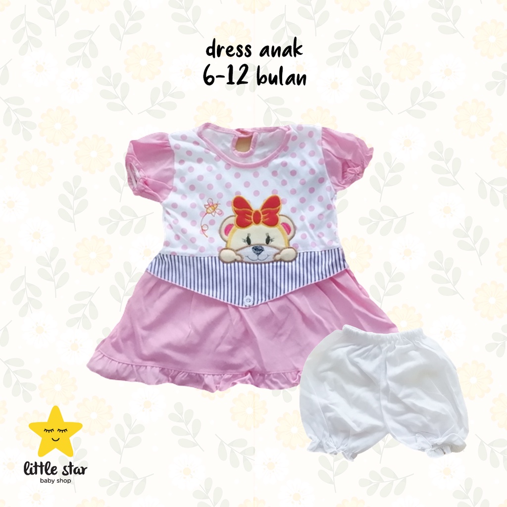 🌸 BEAR Size : All size (6-12 bulan) Lingkar Dada : 50 cm Panjang Dress : 40 cm Bahan : Kaos Katun