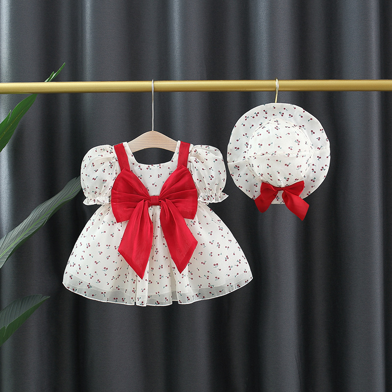 Detail Dress Anak Import Bonus Topi Baju Lapis Furing Gaun Mini Pita Merah
