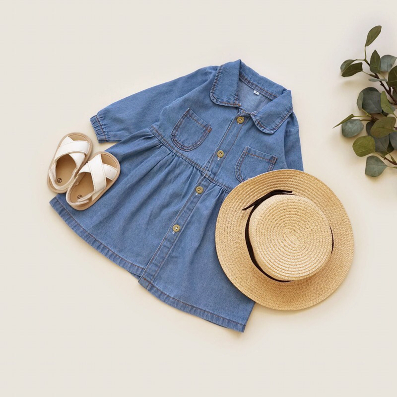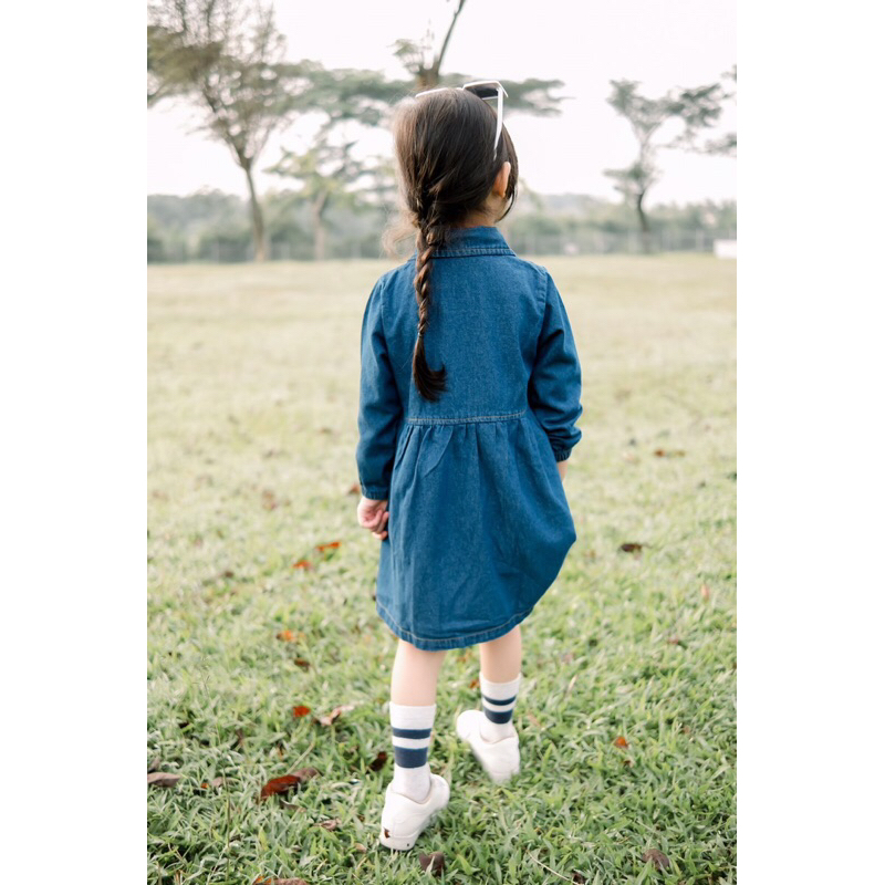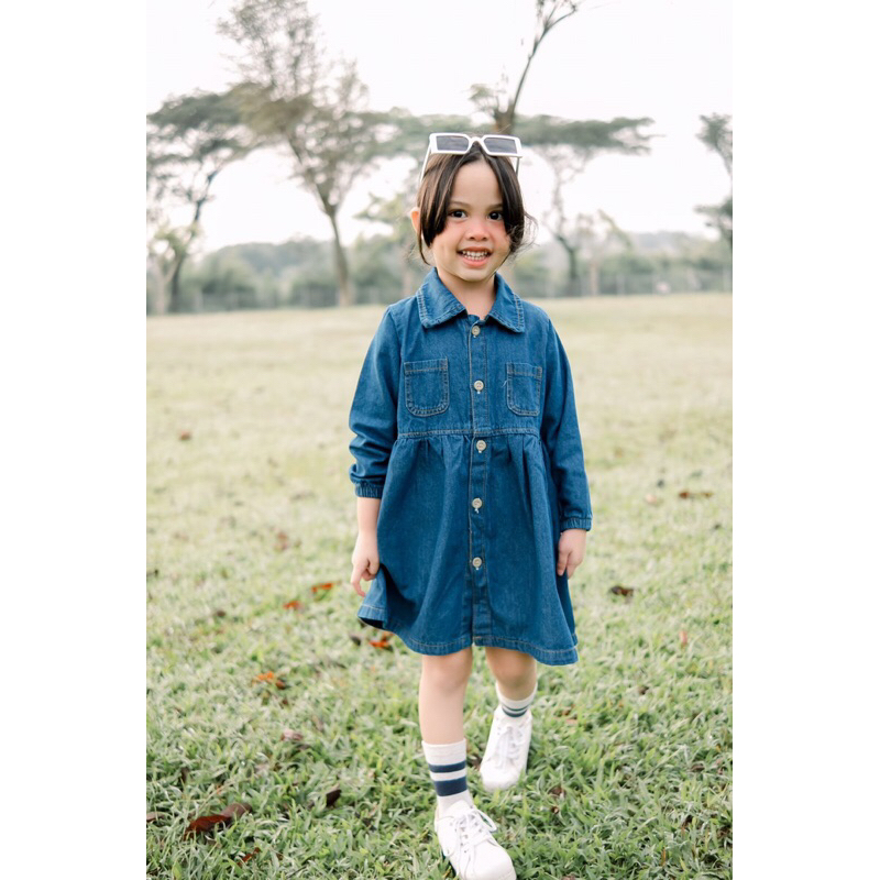 Dress Jeans untuk anak perempuan, bahan jeans ringan tidak terlalu tebal tapi tidak tipis nerawang, sehingga sangat adem dan nyaman di pakai si kecil beraktivitas. Dilengkapi dengan full kancing serta saku hidup di bagian depan sehingga menambah stylish ketika dipakai si kecil mom.