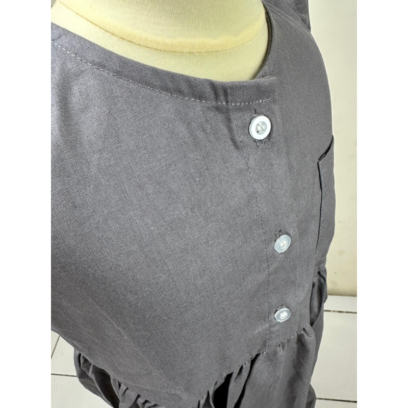 Sale Dress Anak Perempuan Bahan Katun Impor . Dress Lucu dengan Aksen Rumbai di bagian tangan. Kancing hidup dan terdapat kantong di bagian dada.