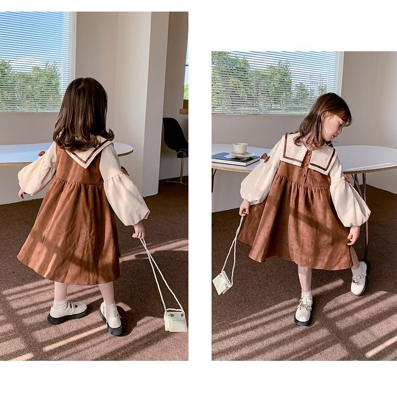 Dress Anak Perempuan Corduroy Lengan Panjang Pita Cokelat - Bahan : Corduroy - Motif: Sesuai Gambar - Gender: Cewek - Warna: Sesuai Gambar - SIZE: 100 cm - 140 cm (2-8 tahun)