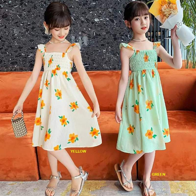 YELLOW Sz 100 (3-4T), 110 (4-5T), 120 (5-6T), 130 (6-7T), 140 (7-8T), 150 (8-9T), 160 (9-10T), 170 (10-11T) . Sz 100. Lebar dada: 22 cm, panjang dress: 65 cm . Sz 110. Lebar dada: 25 cm, panjang dress: 70 cm . Sz 120. Lebar dada: 28 cm, panjang dress: 74 cm . Sz 130. Lebar dada: 29 cm, panjang dress: 80 cm . Sz 140. Lebar dada: 31 cm, panjang dress: 85 cm . Sz 150. Lebar dada: 33 cm, panjang dress: 88 cm . Sz 160. Lebar dada: 35 cm, panjang dress: 92 cm . Sz 170. Lebar dada: 36 cm, panjang dress: 100 cm . GREEN Sz 100 (3-4T), 110 (4-5T), 120 (5-6T), 130 (6-7T), 140 (7-8T), 150 (8-9T), 160 (9-10T), 170 (10-11T) . Sz 100. Lebar dada: 25 cm, panjang dress: 65 cm . Sz 110. Lebar dada: 27 cm, panjang dress: 71 cm . Sz 120. Lebar dada: 28 cm, panjang dress: 76 cm . Sz 130. Lebar dada: 30 cm, panjang dress: 80 cm . Sz 140. Lebar dada: 31 cm, panjang dress: 83 cm . Sz 150. Lebar dada: 32 cm, panjang dress: 88 cm . Sz 160. Lebar dada: 33 cm, panjang dress: 95 cm . Sz 170. Lebar dada: 33 cm, panjang dress: 100 cm . *bagian dada full karet sebelum ditarik sama sekali **toleransi ukuran jika ada perbedaan kurleb 1-2 cm *perbedaan warna lebih terang atau lebih gelap sedikit adalah hal wajar krn perbedaan layar monitor yg berbeda2