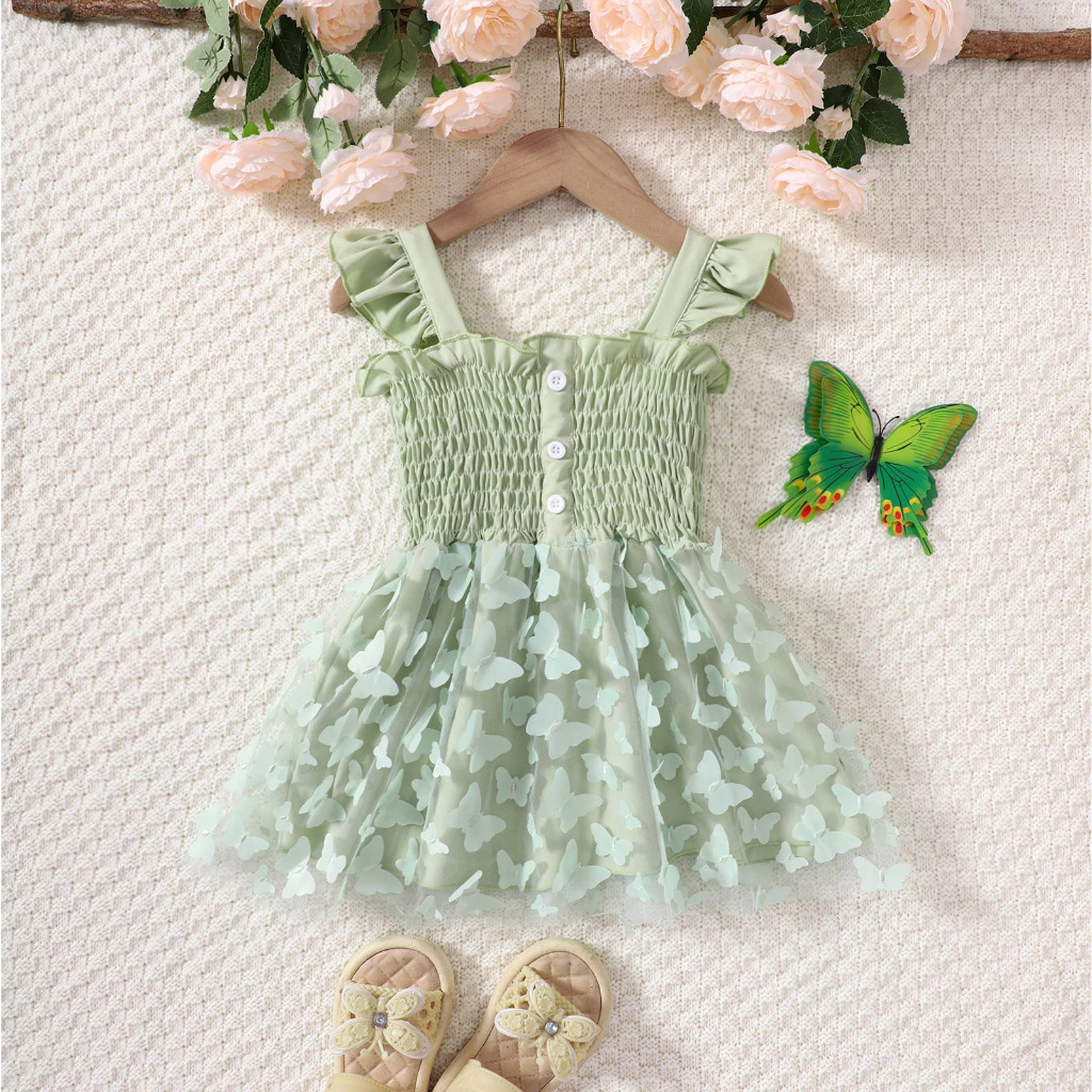 Detail Dress Anak Perempuan Tanpa lengan Motif Tile 3D Kupu-Kupu