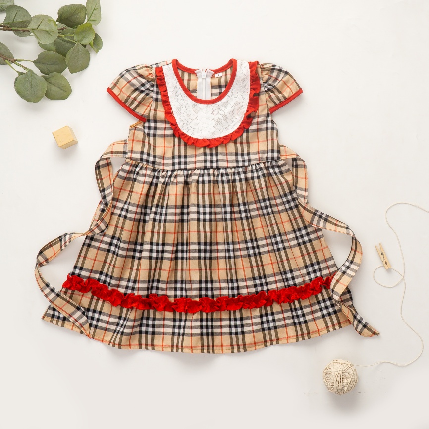 Dress anak motif kotak cocok di pakai untuk bepergian atau sehari hari.
