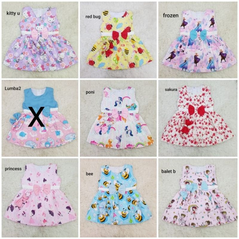 Ready Stock Dress Bayi Gaun Bayi Gratis Bandana Terbuat dari bahan yang lembut dan aman untuk bayi Semua produk hoshi sudah bersertifikat SNI Bahan atas saten bawah katun Ada resleting dan tali belakang