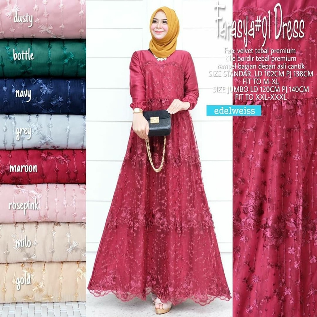 Detail Dress Brukat Wedding Dress Farasya #91 Gamis Kondangan Jumbo Wanita xxxl Ld 130cm Brokat Tile Outfit Bridesmaid Pernikahan Enagement Gamis Lebaran Remaja Muslimah Terbaru Grosir Gamis Termurah Warna Putih Navy Greentea Maroon Nude Gold Brown Millo Denim